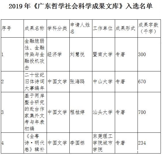 2019年《广东哲学社会科学成果文库》入选名单发布